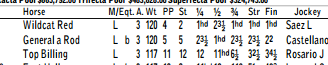 - Wildcat Red and General A Rod ran 23 for quarter and 46 for half and stayed even entire race. Both ridden with no mercy from Castellano and Saez.